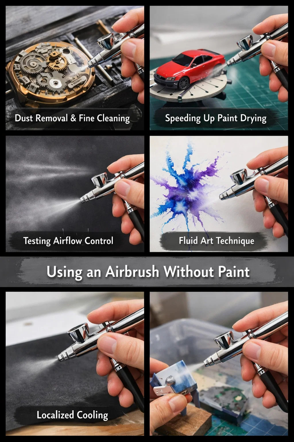 Absolutely! Although the name " airbrush " contains the word "brush," it's essentially a device that allows for precise control of airflow. Even without paint, it remains a very practical and versatile tool.